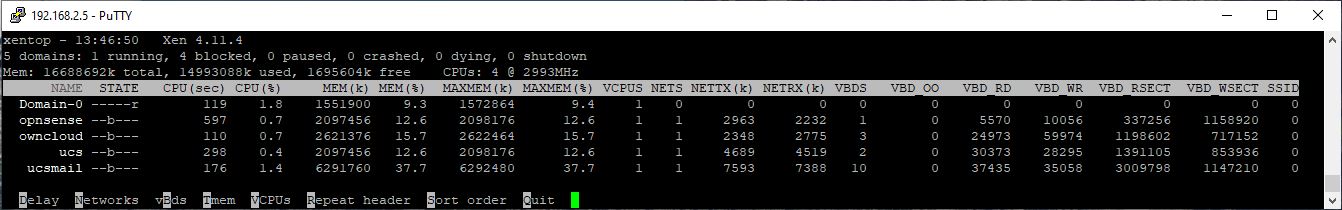 XEN Host mit vier VM, 3x PVHVM und 1x PVH